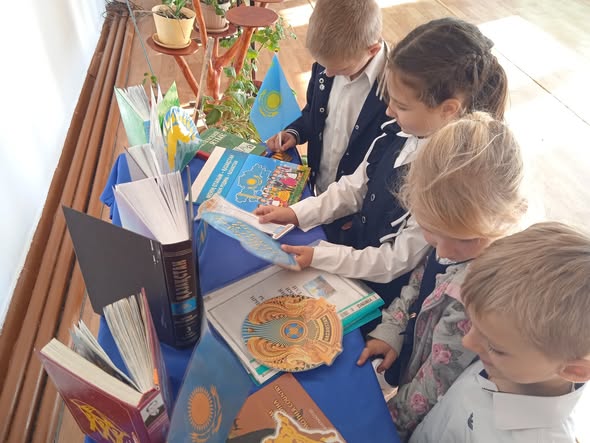 В преддверии празднования Дня Республики Казахстан в фойе Макашевской основной школы была оформлена книжно-иллюстративная выставка библиотекарем Юхновец А.А.